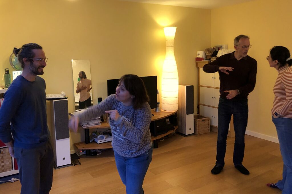 Improv (a form of theatre where players create scenes together on the spot) is a perfect way to practice a language. Maybe you’ve seen an improv show or watched a YouTube video and thought, “I want to do that!” Then this is your chance! Or maybe you thought, “I could never do that!” Then don’t worry: the exercises we’ll do in this workshop are not the scenes you see in performances, but rather the easier warm-up exercises that improv players start their lessons with.